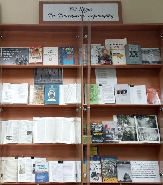 Бібліотека запрошує читачів згадати подвиг юних героїв, переглянути тематичну виставку літератури та історичних матеріалів «Героїчний шлях української звитяги: від Крут до Донецького аеропорту».