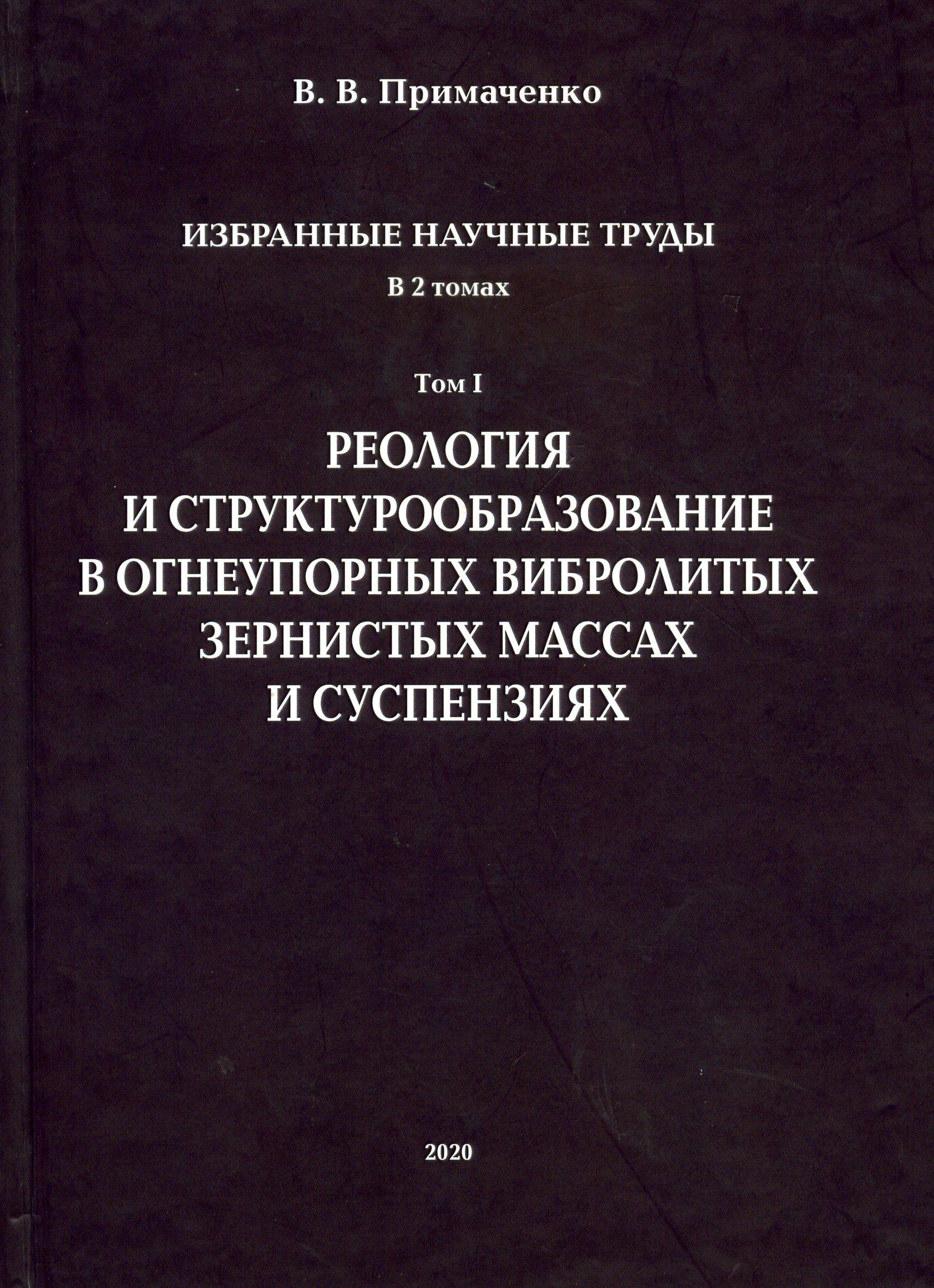 Избранные научные труды : в 2-х т.; к 110-летию со дня рождения А. С. Бережного. Т. 1 : Реология и структурообразование в огнеупорных вибролитых зернистых массах и суспензиях / В. В. Примаченко ; АО «Укр. науч.-исслед. ин-т огнеупоров им. А. С. Бережного». – Харьков : Точка, 2020. – 367 с. : ил. – Имен. указ.: с. 364. – Библиогр. к кажд. ст. – ISBN 978-617-7856-06-0.